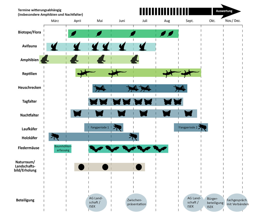 | Leistung | Analyse und Bewertung Biotope, Fauna und Landschaftsbild, Empfehlungen zur Eingriffsminimierung und potenzieller Kompensationsmaßnahmen |