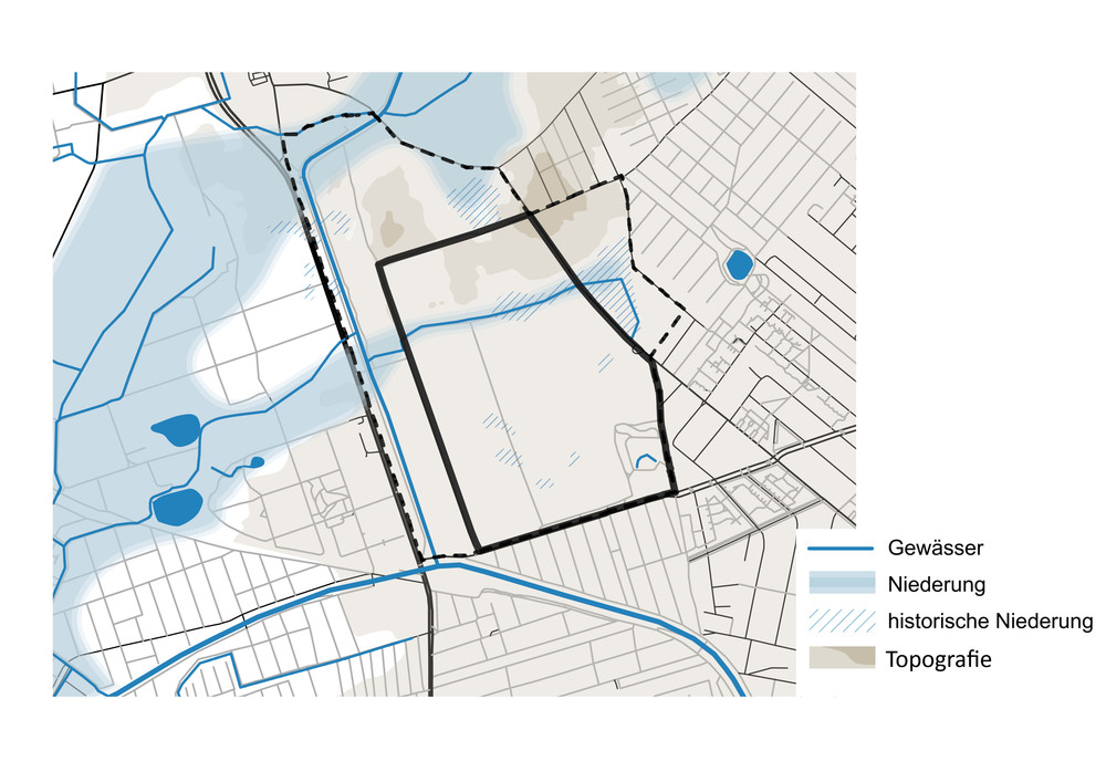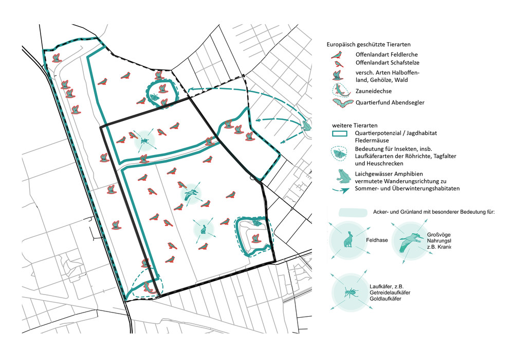 Unter Einbeziehung der Fachverbände wurde ein Leitbild entwickelt, mit dem Anforderungen an die zukünftige bauliche Entwicklung formuliert werden. Wichtige Grünzüge und Kaltluftschneisen sowie strukturreiche Hotspots der Artenvielfalt sollen erhalten und weiterentwickelt werden. Durch eine intelligente Regenwasserbewirtschaftung und wassersensiblen, hitzeangepassten Entwicklung des neuen Quartiers können die schützenswerten Grünräume durch Zuführen von Regenwasser sogar aufgewertet werden. Die „Entwässerungsplanung“ wird umcodiert zur „Bewässerungsplanung“.