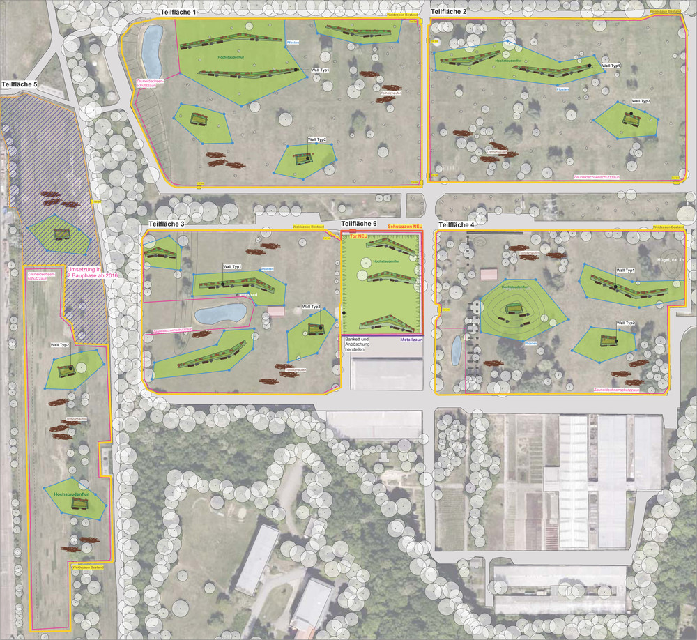Diese Strukturen wurden dann ausführungsreif geplant, in zwei Bauabschnitten unter der Bauüberwachung von bgmr Landschaftsarchitekten von Herbst 2014 bis Oktober 2015 bzw. Frühjahr 2016 hergestellt.