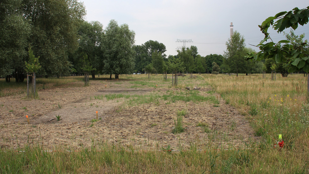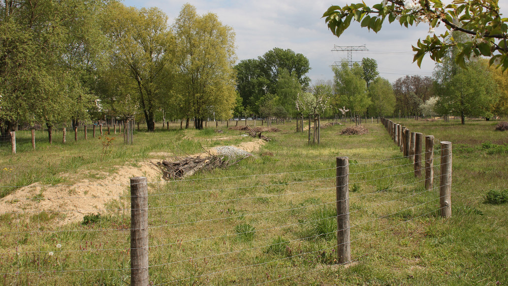 Hierfür wurden Ersatzhabitate wurden auf Wiesenflächen im Landschaftspark Herzberge entwickelt, die bisher durch Schafbeweidung offen gehalten wurden. Ziel war es auch nach Ansiedlung der Zauneidechsen die Beweidung, dann angepasst an die Artenschutzerfordernisse fortzuführen. Dafür wurde zunächst ein Entwicklungskonzept erstellt und abgestimmt, dass auf 7 Teilflächen (10 ha Größe) Bereiche vorsah, die durch Auszäunung von Beweidung freizuhalten und in denen differenzierte Habitatstrukturen für Zauneidechsen anzulegen waren.