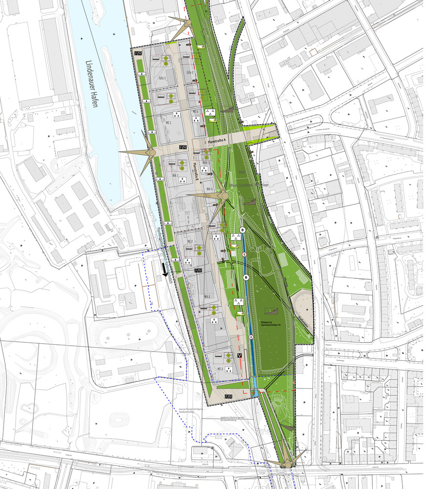 Mit der Verbindung von Karl-Heine-Kanal und Lindenauer Hafen sowie der geplanten Anbindung an den Elster-Saale-Kanal wird dieser bisher weitestgehend brachliegende Stadtbereich zu einem wichtigen Knotenpunkt des touristischen Gewässerverbundes der Region Leipzig mit Entwicklungsoptionen als Wohn-, Naherholungs- und Dienstleistungsstandort. Der Bebauungsplan Nr. 359 soll hierfür Planungsrecht schaffen. Neben der Entwicklung von Baugebieten und von Verkehrsflächen steht die Schaffung von Grünflächen im Mittelpunkt. Die Entwicklung eines Parks an der Hangkante zu den östlich angrenzenden Stadtquartieren sowie die Gestaltung der Ufersituation am Lindenauer Hafen im Übergang zu den neuen Baugebieten (Uferpromenade) sind wichtige Bausteine der Freiraumentwicklung.