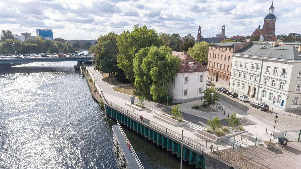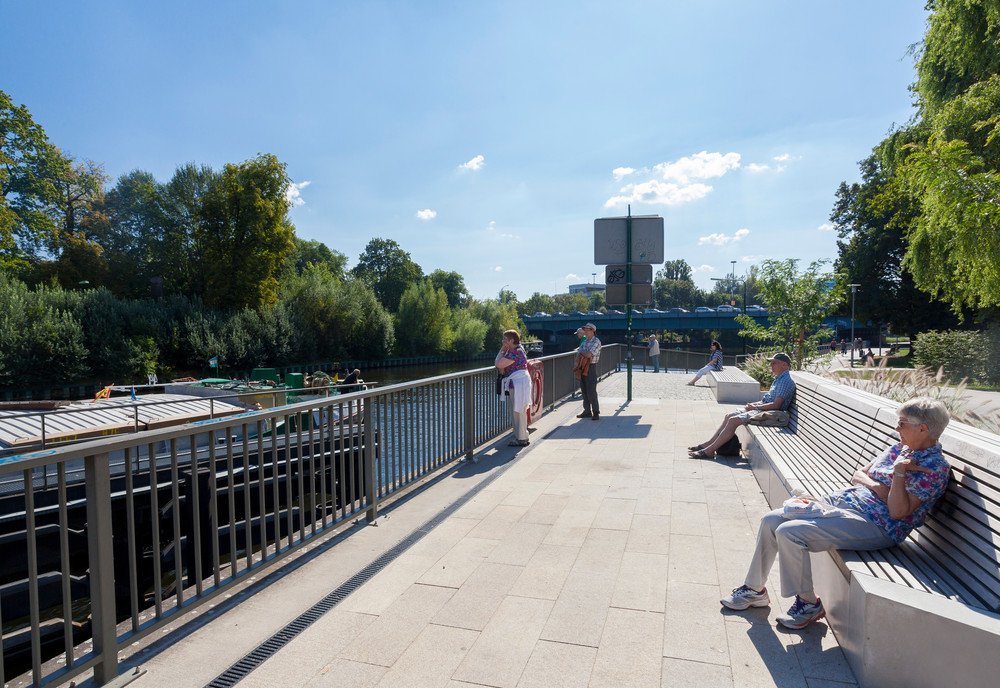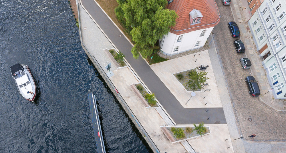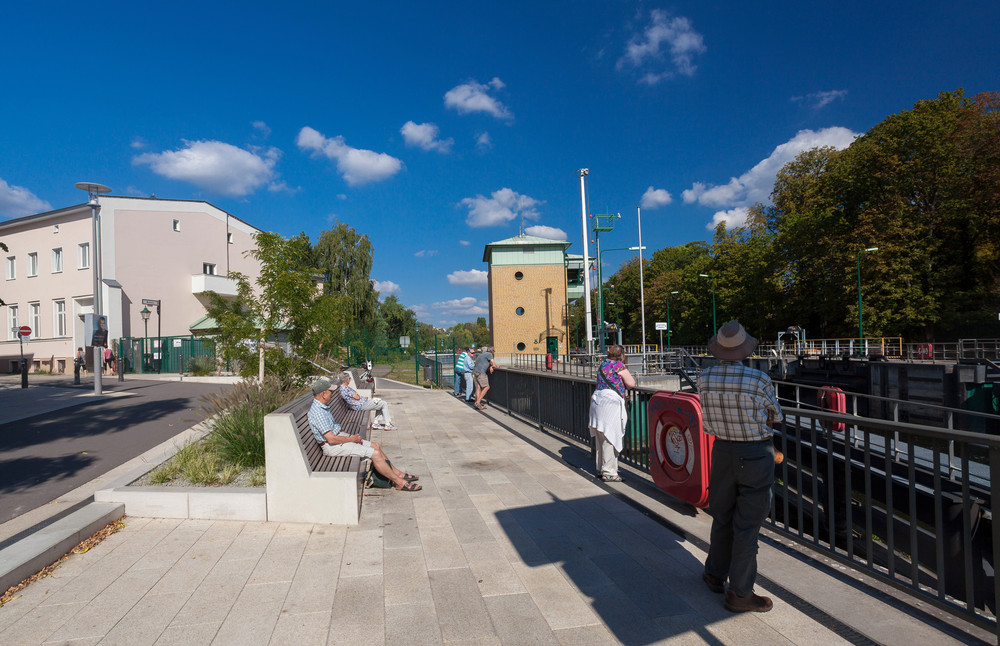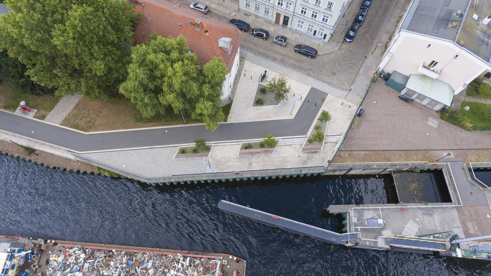 Die Spandauer Schleuse am Lindenufer ist ein Abschnitt des Havel-Radwegs und damit wichtiger Bestandteil des Fahrradroutennetzes in Berlin und Brandenburg. Die Schleuse sichert die Verbindung zwischen Spree, Havel und Oder. Sie ist eine besondere Sehenswürdigkeit in der Altstadt Spandau und beliebter Treffpunkt für Spandauer und Besucher der Altstadt. Der Schleusenplatz ist ein wichtiger Gelenkpunkt. Er schafft Orientierung für die Nutzer des hier vorbeiführenden Havelradwegs und wertet die Spandauer Schleuse als attraktives Angebote zum Verweilen und Beobachten des Schiffsverkehrs auf. Er besetzt den wichtigen Übergang zur historischen Stadt - dem Kolk - und vermittelt zur Flußlage.