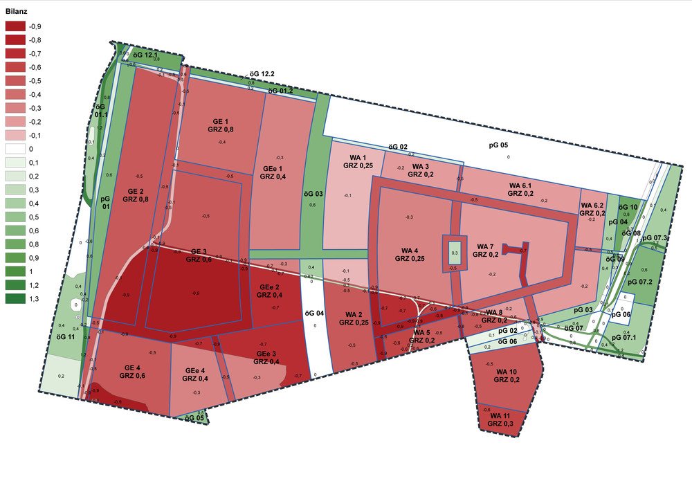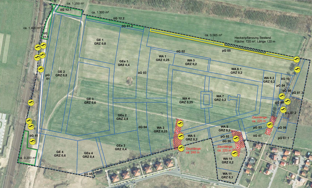 Um das Bauen im bisherigen Außenbereich zu ermöglichen, wurden vertiefende Untersuchungen zur Natur- und Umweltweltverträglichkeit durchgeführt, u. a. zum Erhalt wertgebender Biotop- und Landschaftsstrukturen sowie zur artenschutzrechtlichen Verträglichkeit (Brutvögel, Reptilien, Fledermäuse).