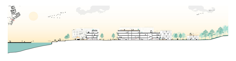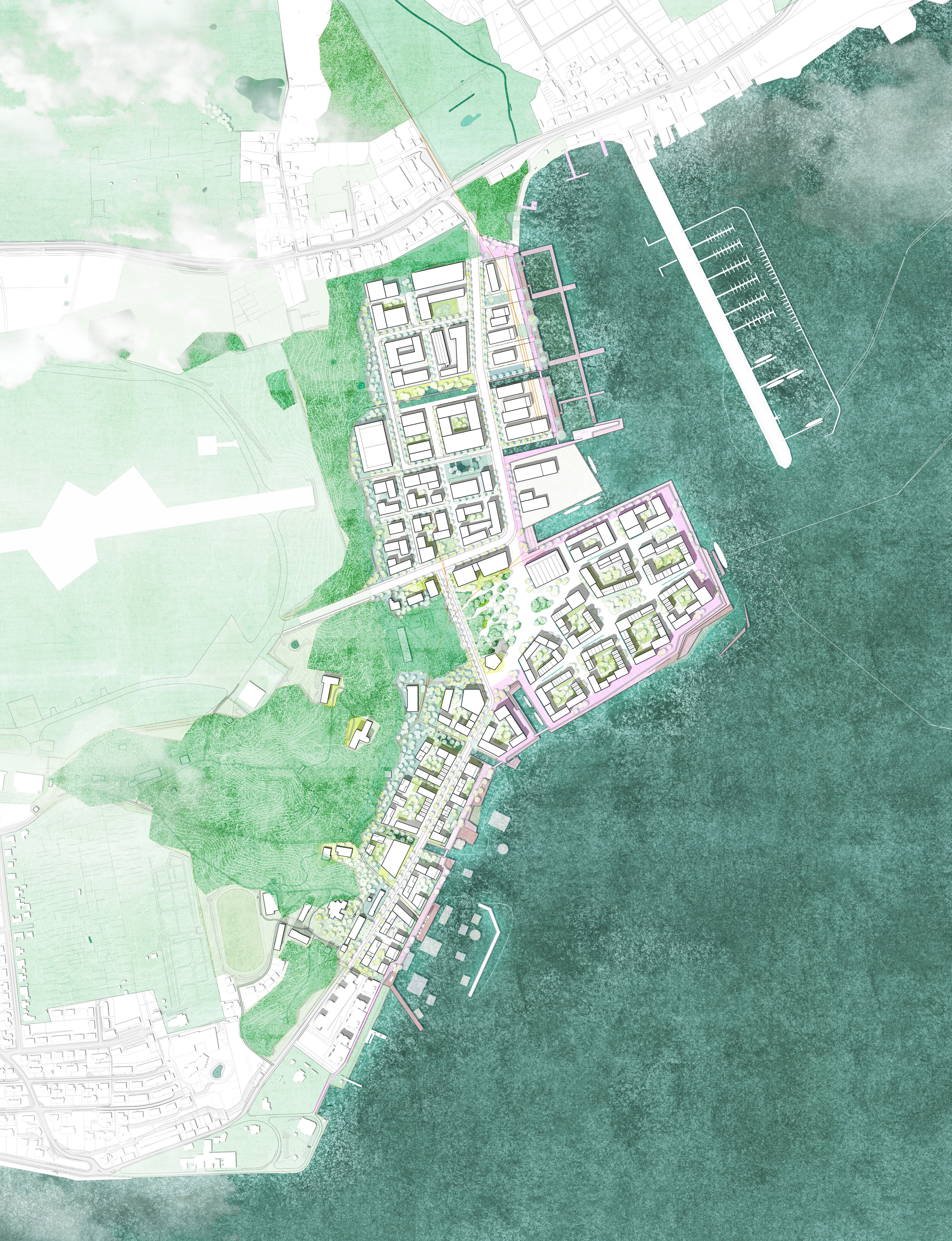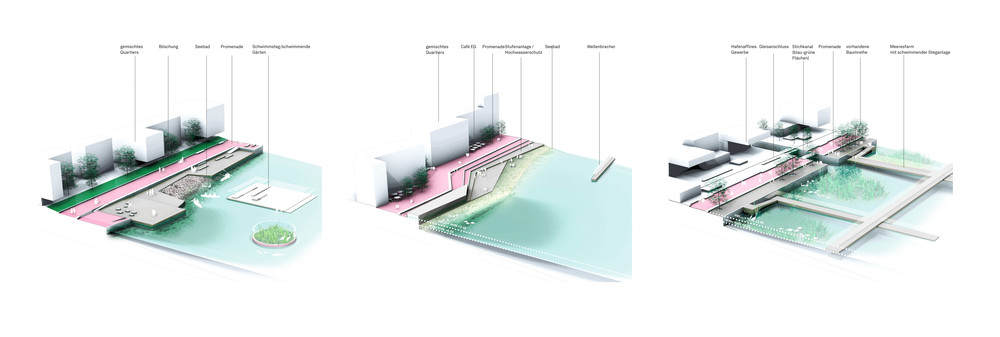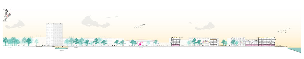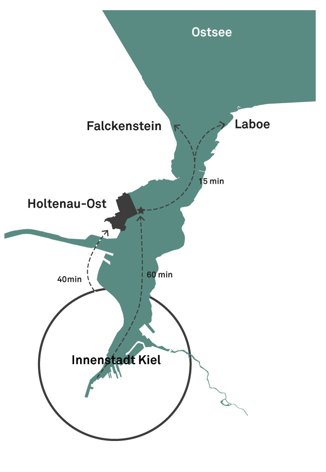 Der internationale städtebaulich-freiraumplanerische Wettbewerb setzt die Grundlagen für die Entwicklung eines neuen Stadtteils für ca. 5000 Menschen in Kiel Holtenau. Das zuvor militärisch genutzte MFG 5-Areal soll durch bessere Anbindungen, neue Angebote und gute Benachbarung zu den angrenzenden Ortslagen aus seiner exterritorialen Lage befreit werden. Unser Wettbewerbsbeitrag entwickelt den neuen Stadtteil als mischgenutztes, kompaktes, Quartier zwischen bestehenden Waldflächen des Fördehangs und der neuen Fördepromenade. Die gute Lage nutzen, exponierte Freiräume und landschaftsbezogene Orientierungen für das Stadtquartier schaffen und zugleich geschützte, urbane Räume für die Gemeinschaft im öffentlichen Raum entwickeln, sind die entwurfsleitenden Anliegen. Das Projekt gilt als eines der bedeutendsten städtebaulichen Entwicklungsprojekte der Landeshauptstadt Schleswig-Holsteins. Das Zukunftsquartier soll neue Maßstäbe für die Stadtentwicklung am Wasser, den Klimaschutz, die Energieversorgung, die Mobilität der Zukunft und den Tourismus in der Förderegion setzen. Mit dem Projekt rückt die Stadt näher ans Wasser und erschließt einen neuen, lebenswerten Ort für Alle.