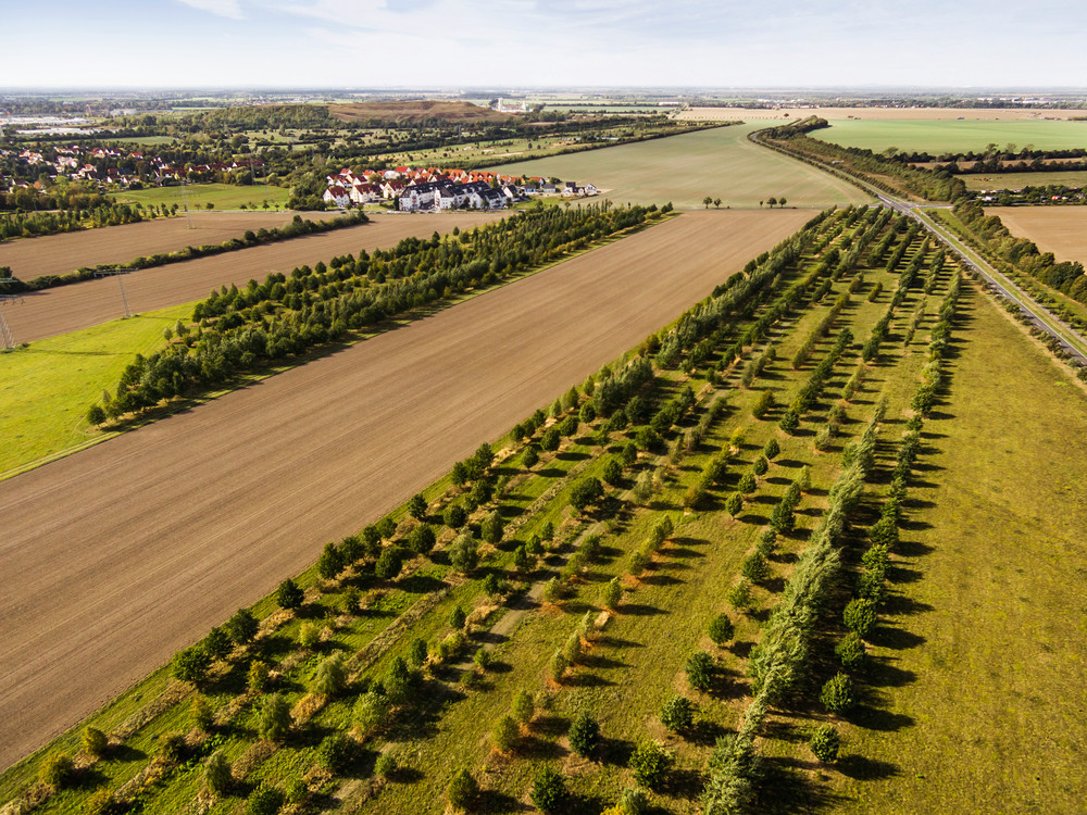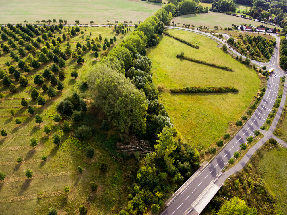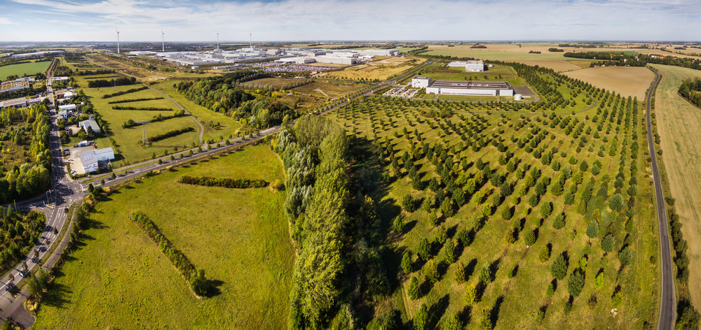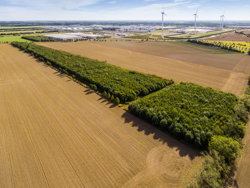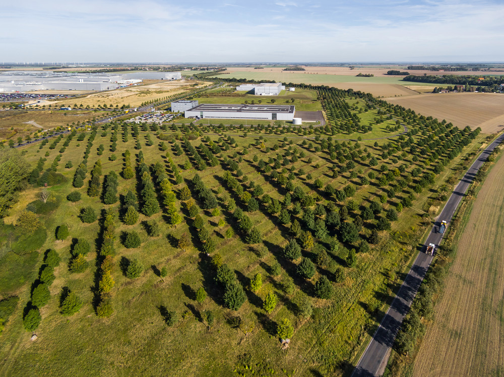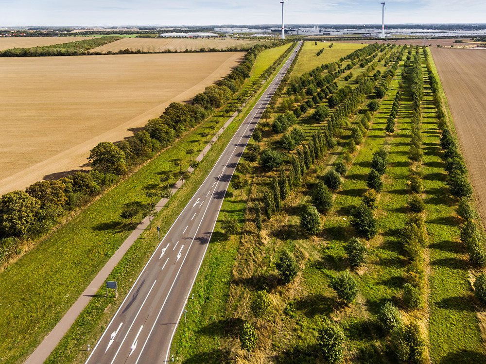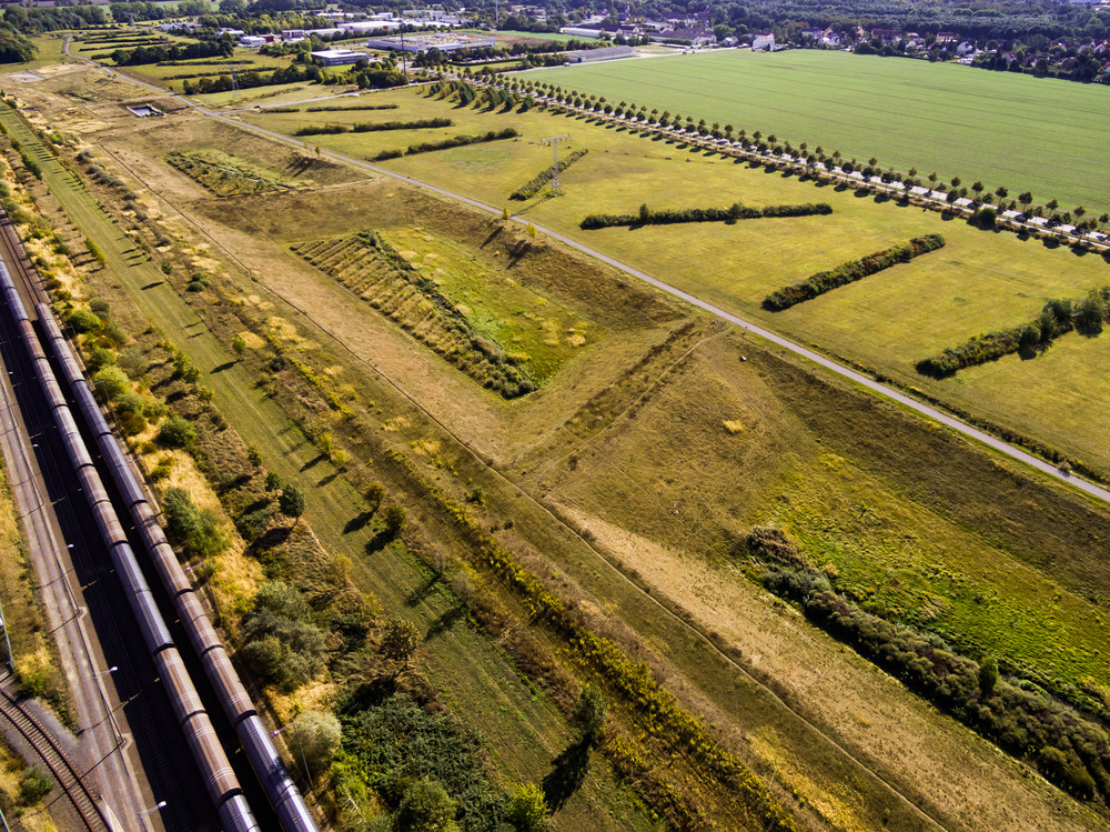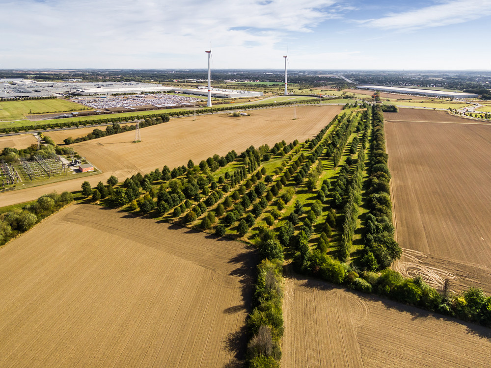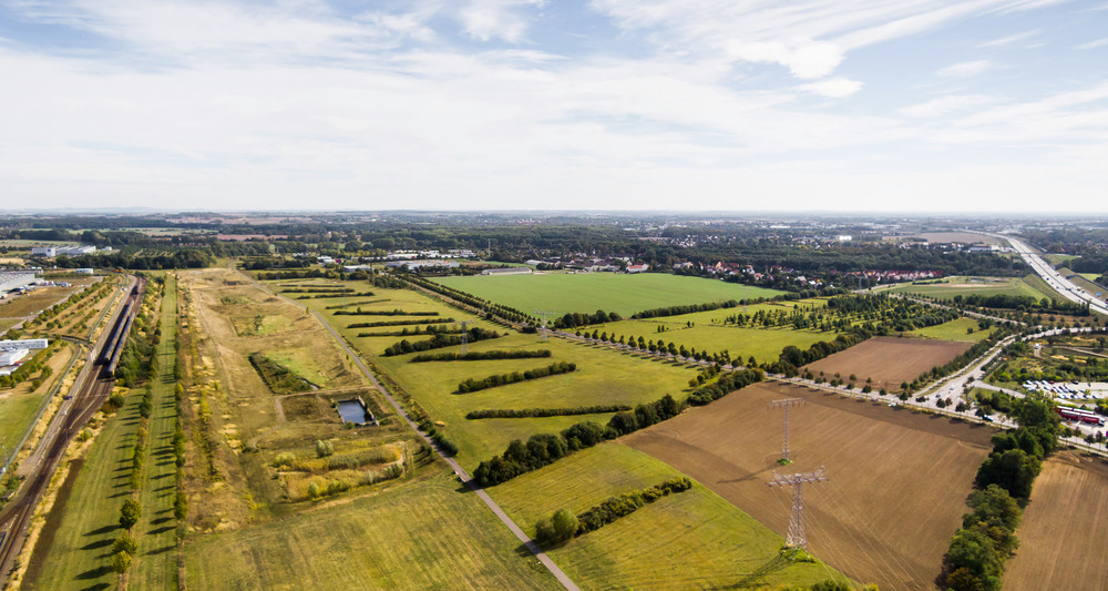 Mit der Ansiedlung des BMW-Werkes an der A14 in Leipzig-Plaußig setzte ein umfassender Wandel des historisch ländlich geprägten Raumes ein. Der Transformationsprozeß durch großflächige Gewerbe- und Industrieanlagen war grundlegend. Er stellte uns vor die Aufgabe auf einer Fläche von ca. 150 ha die Voraussetzungen für die Entwicklung einer neuen, prägnanten und kompositorisch kraftvollen Landschaft zu schaffen.Unter dem Leitbild der 'Bewegten Landschaft' erfolgte die Neuordnung der Feldflur durch Baumfilter, Waldflächen, Landschaftshecken und Wiesenflächen. Die durch den Impact des BMW-Werks entstandenen topografischen Verwerfungen wurden durch sichtbare Einschnitte und Auftragsböschungen zum Merkmal der neuen Landschaft herausgearbeitet.Darüberhinaus konnte eine Kette von Regenrückhalteflächen als integriertes Landschaftsbauwerk inszeniert und durch einen begleitenden Rad- und Skaterweg erlebbar gemacht werden.Bgmr erarbeitete ein Pflege- und Entwicklungskonzept das die Unterhaltung und Entwicklung der Landschaft über einen Zeitraum von 15 Jahren fortschrieb. Heute, ca.15 Jahre nach Abschluss der Neubaumaßnahmen, haben sich die Gehölzflächen zu kraftvollen Landschaftselementen entwickelt. In den Wiesenflächen konnte die Beweidung durch Schafe etabliert werden.