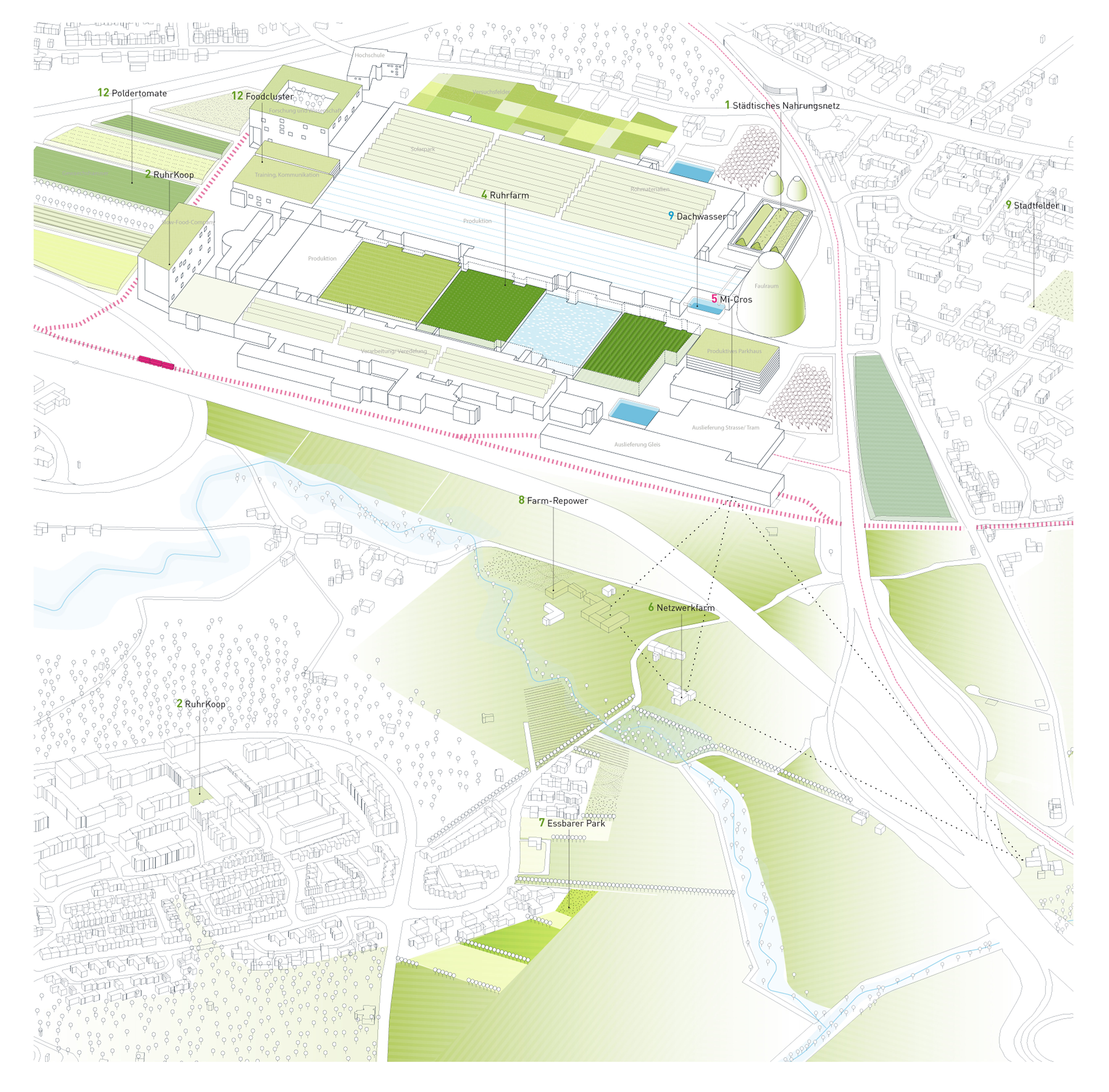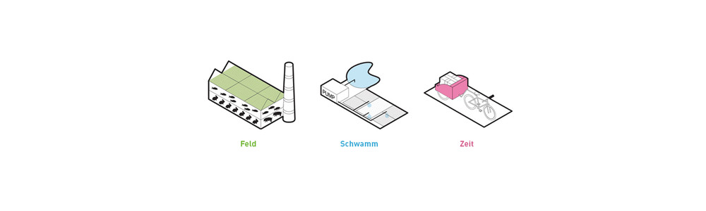 Die Zeitstadt unterstützt das Individuum bei seinem Zeitmanagement im Alltag in einem urbanen Ballungsraum. Die Feldstadt strukturiert den Umgang mit den großen landwirtschaftlichen Bereichen und den urbanen Resträumen der Metropole Ruhr. Die Schwammstadt steht für einen produktiven Umgang mit der Ressource Wasser.