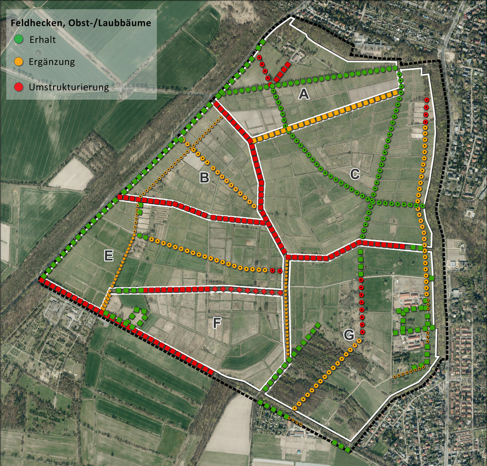 Im Rahmen des Pflege- und Entwicklungsplanes (PEP) war nun zu klären, wie diese großräumige, durch Feldhecken, Gebüsche Obstbaumallen Wälle und Gräben fein gegliederte Offenlandschaft weiter zu erhalten bzw. zu entwickeln ist.