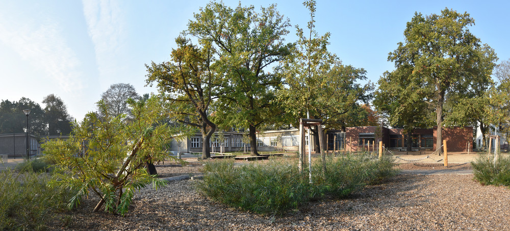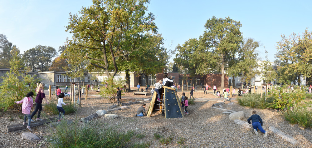 Die Außenanlagen der Robert-Reinick-Grundschule wurden parallel zur sukzessiven Sanierung und Erweiterung von Unterrichtsgebäuden neu hergestellt. Die Maßnahme umfasste die Neuausstattung mit ungedeckten Sportanlagen, Pausenflächen, altersgerechten Spielangeboten, Schulgärten und Abstellflächen. Das Grundstück wird durch einen parkartigen Freiraum mit mehr als 200 Jahre alten Stieleichen geprägt. Ziele der Neugestaltung waren die flächenhafte Versickerung des Niederschlagswassers auf dem Grundstück und die behutsame Einbindung von Erschließungs- und Bewegungsflächen in die parkartige Schullandschaft. Der Umbau erfolgte parallel zur Erweiterung durch den Neubau eines Unterrichtsgebäudes und einer Zweifeldsporthalle. Die Beteiligung von Lehrern und Schülern wurde parallel zum Planungsprozess durch die pädagogische Beratungsstelle der Senatsverwaltung für Bildung, Jugend und Familie ‚Grün macht Schule‘ begleitet.