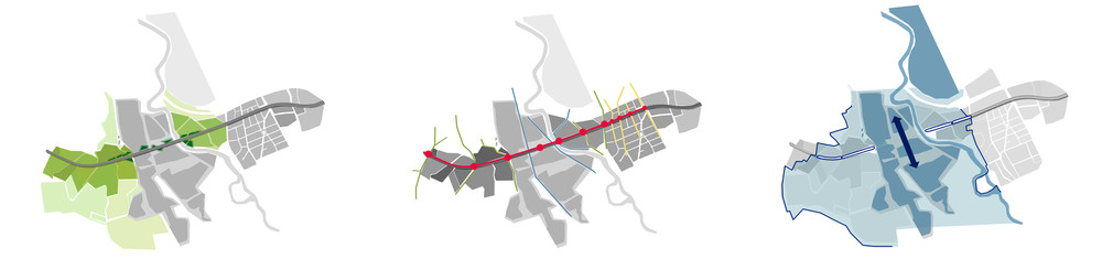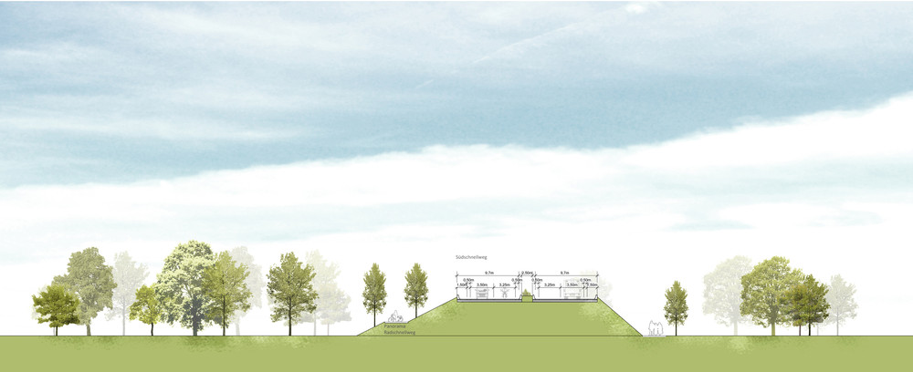 Die anstehende Sanierung des Südschnellweges in Hannover bietet die Chance, den Straßenraum mit seinen Begleiträumen zu verändern und aus einem monofunktionalen Verkehrsraum einen mehrfachcodierten Raum zu entwickeln. Die Leistungsfähigkeit wird in Bezug auf den KFZ-Verkehr durch die abschnittsweise Tunnellösung gewährleistet und gleichzeitig mehr Bewegungs- und Aufenthaltsraum Raum für Fußgänger und Radfahrer angeboten. Die Straße wird so aus unterschiedlichen „Mobilitätsperspektiven“ qualifiziert. Im urbanen Raum begleiten Alleebepflanzungen die Fahrbahnflächen. Im Bereich der Landschaft ändert sich das Motiv, die begleitende Landschaft wird zum visuellen Kulissenraum. Die Straßenraumgestaltung korrespondiert auf den jeweiligen städtischen und landschaftlichen Kontext. Mit der Umgestaltung des Südschnellweges als Stadtboulevard werden im urbanen Kontext neue Baufelder generiert, die Straße zu einer Stadtstraße umgebaut. In der Landschaft gelingt es durch die Neugestaltung der Brücken die Trennwirkung des Schnellwegs zu mindern und die zerschnittenen Landschaftsräume zu verknüpfen.